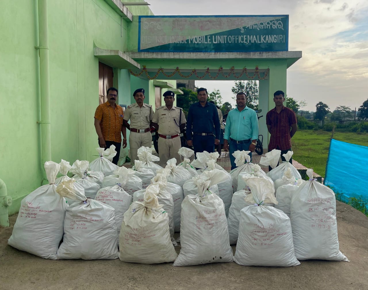 ମାଲକାନଗିରି, ୨୦/୦୭ (ସତ୍ୟ ନାରାୟଣ ଦାଶ): ଏକ ବିଶ୍ୱସ୍ତ ସୂତ୍ରରୁ ଖବର ପାଇ ଅବକାରୀ ଅଧିକ୍ଷକ ବିମ୍ବାଧର ପଣ୍ଡାଙ୍କ ନିର୍ଦ୍ଦେଶ କ୍ରମେ ମାଲକାନଗିରି ଅବକାରୀ ବିଭାଗ ତରଫରୁ ଯୋଡ଼ାଆମ୍ବ ଥାନା ଅନ୍ତର୍ଗତ ସାଦରାମ ଓ କୋଡିଗନ୍ଦୀ ଜଙ୍ଗଲରୁ ୮୪୪ କେଜି ଗଞ୍ଜେଇ ଜବତ କରାଯାଇଛି ଯାହାର ଆନୁମାନିକ ମୂଲ୍ୟ ୮୪ ଲକ୍ଷ ୪୪ ହଜାର ଟଙ୍କା ହେବ। ପ୍ରକାଶ ଥାଉ କି ଉକ୍ତ ଗଞ୍ଜେଇକୁ ବାହାର ରାଜ୍ୟକୁ ଚାଲାଣ ପାଇଁ ଜଙ୍ଗଲ ଭିତରେ ଲୁଚା ଯାଇଥିଲା। ଏ ସଂକ୍ରାନ୍ତରେ ଏକ ଦାବିହିନ ମାମଲା ରୁଜୁ କରାଯାଇ ଅଧିକ ତଦନ୍ତ ଜାରି ରହିଥିବା ସୂଚନା ଦେଇଛନ୍ତି।ଏହି ଚଢ଼ାଉ ସମୟରେ ଟଙ୍କଧର ଭୋଇ ଅବକାରୀ ଉପ ଅଧିକ୍ଷକ, ସନ୍ତୋଷ କୁମାର ବଳ, ଅବକାରୀ ନିରୀକ୍ଷକ, ଅବକାରୀ ଉପ ନିରୀକ୍ଷକ ଅଶେଷ କୁମାର ନାୟକ, ରମେଶ ଚନ୍ଦ୍ର ସାହୁକାର, ଏ ଏସ ଆଇ ଜେମେସ ମାଲଖମ୍ ସାହୁ, ରାମଚନ୍ଦ୍ର ହନ୍ତାଲ, କନେଷ୍ଟବଳ ବିପୁଲ ଶେଖର ଯୋଦ୍ଧର, ଜ୍ଞାନ ରଞ୍ଜନ ସାହୁ, ଚନ୍ଦ୍ର କାନ୍ତ ନାୟକ, ସରିତା ନାୟକ, ଜୁଲି ସା ଉପସ୍ଥିତ ଥିଲେ।