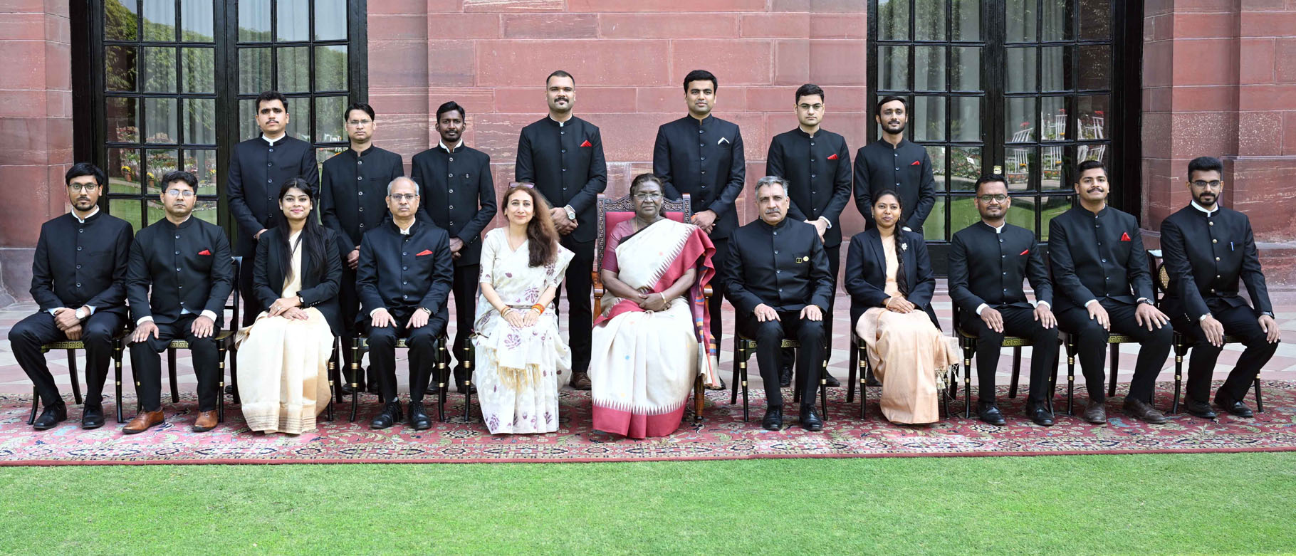 ଭାରତୀୟ ନୌସେନା ସାମଗ୍ରୀ ପରିଚାଳନା ସେବା ଓ ଅସ୍ତ୍ରଶସ୍ତ୍ର ସେବାର ଟ୍ରେନି ଅଧିକାରୀମାନେ ରାଷ୍ଟ୍ରପତିଙ୍କୁ ଭେଟିଲେ